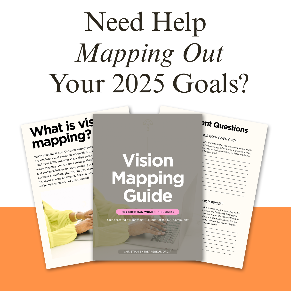Drop your details below, and I'll send you a copy of my Vision Mapping Guide—your step-by-step roadmap to help you take your God-given ideas from paper to reality. Plus, you'll get access to The CEO Newsletter, where I share faith-filled insights, strategies, and encouragement for your business journey!