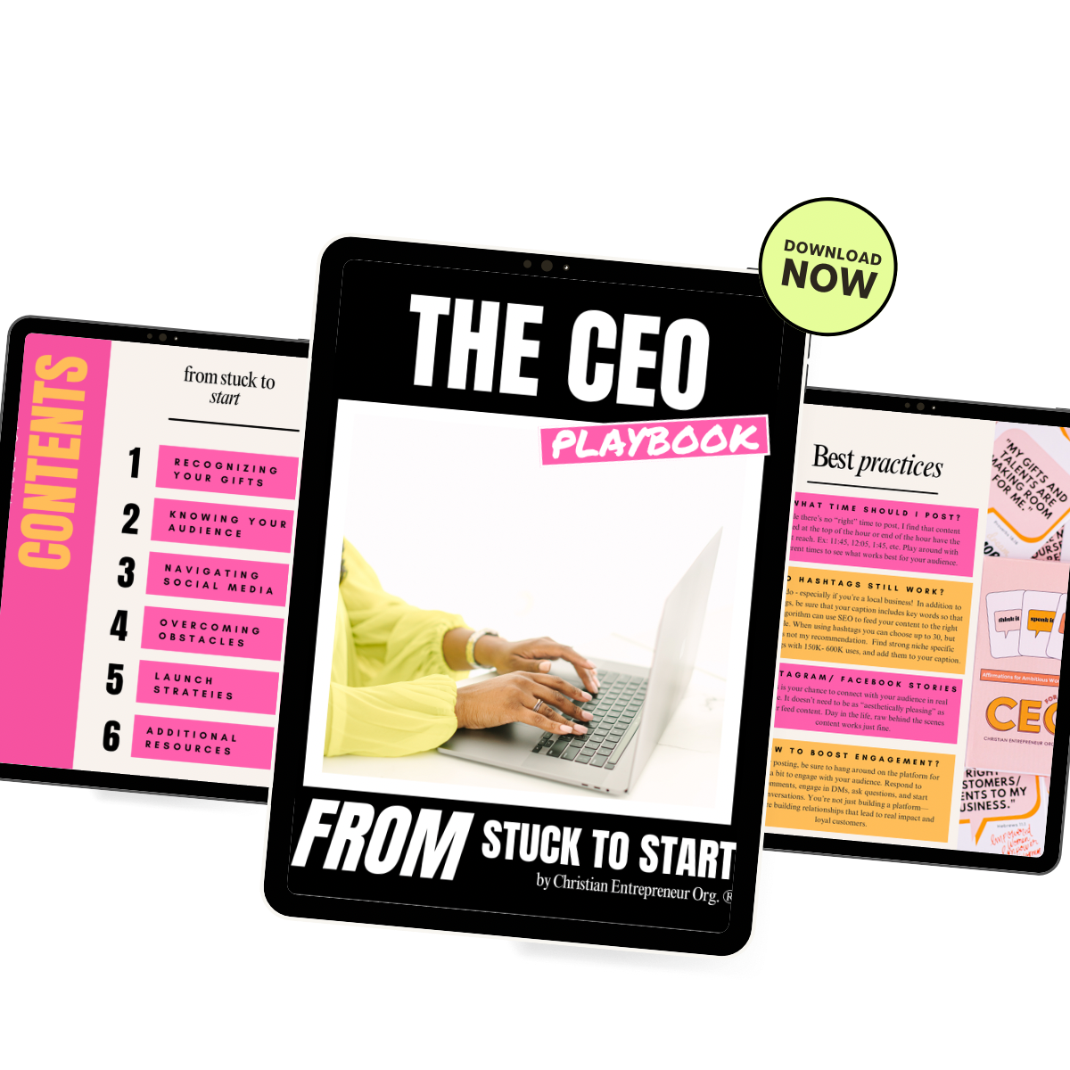 The CEO Playbook is a guide to help you recognize your gifts, bring structure to your ideas, and build a meaningful, profitable business. Ready to move from calling to clarity?